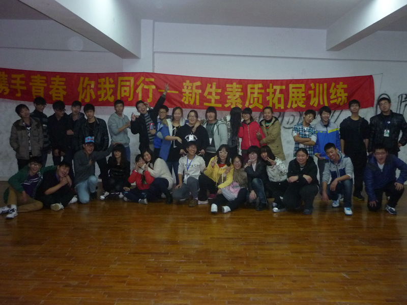 ——13新生素质拓展训练 11月26日—12月17日,我校公共基础部的左逸清老师在13级新生中开展了为期一个月的素质拓展训练课程。本次训练课程旨在弘扬以和谐为核心的常高���“美”文化,培养新生良好的团队精神,促其养成积极进取的人生态度。 只有完美的团队,没有完美的个人。良好的团队精神和积极进取的人生态度是现代人应有的基本素质,也是现代人人格特质的两大核心内涵。在追求卓越的道路上团队的协同作用是不可或缺的。没有整齐划一的动作和天衣无缝的配合,就不可能有美轮美奂的“千手观音”;没有超越自我的意识和乐于担当的员工,就不可能有睥睨全球的微软帝国。团队意识是企业在激烈的市场竞争中立于不败之地的动力,也就必然成为当代职业教育的圭臬。常高艺素来以创建和谐的校园美文化为宗旨,着力于培养集良好的团队意识和积极进取的人生态度于一身的“三创双能”人才,此次拓展训练就是在这种办学理念指导下开展的特色课程。 训练分为活动介绍、热身活动、小组建设和主题活动四个部分。 报价组配 经过简短的活动介绍,训练进入了第一个有趣的环节——“报价组配”。在这个热身活动中,学生们首先围成一个圈,然后由老师报价,男女生根据自己所代表的不同价格在规定时间内抱团组队。最初,同学们还会碍于性别的不同和关系的生疏而止步不前,但渐渐地在老师的指导和惩罚的压力下开始积极地配价结对起来,甚至有些善于组织的学生还主动拉拢同学完成配价,整个训练场地很快洋溢起学生们紧张而欢乐的笑声。 小组建设 成功地热身以后,训练进入了小组建设环节。在这个环节中,班级成员被分成四个小组,每个小组要在规定的15分钟时间内选出自己的队长、队名、队歌、口号,并最终上台进行展示。学生们在这个过程中充分体现了他们创新的思维和幽默的精神,屌丝组、火箭组、爸爸去哪儿组、笑傲江湖组……五花八门的队名和自编自导、独具特色的队歌、口号以及POSE,惹得在场的同学和老师都忍俊不禁。