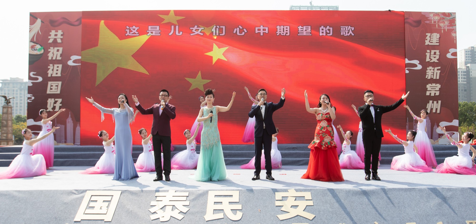 10月1日上午,来自公安、卫生、环卫等各行业代表,与来自八方游客齐聚恐龙园迪诺水镇,共同参加由中共常州市委宣传部、常州市商务局主办,常州广播电视台、中国银行常州分行、环球恐龙城迪诺水镇承办的"国泰民安‘常’寿面群众吃面活动"。常高艺艺术团师生受邀参加活动。 上午10:18,活动在常高艺师生编排的说唱《爱吃面先生》中拉开帷幕。《今天是你的生日我的中国》、大合唱《歌唱祖国》等歌舞节目,激发市民的爱国热情,表达对祖国母亲的真挚祝福和对美好未来的向往。(社会实践部 吴祯)