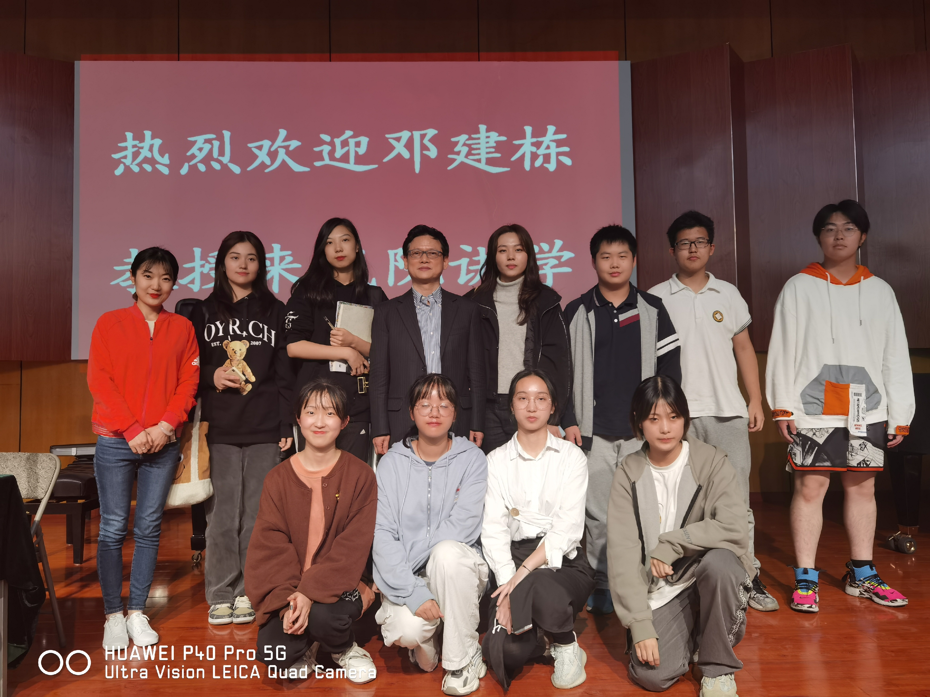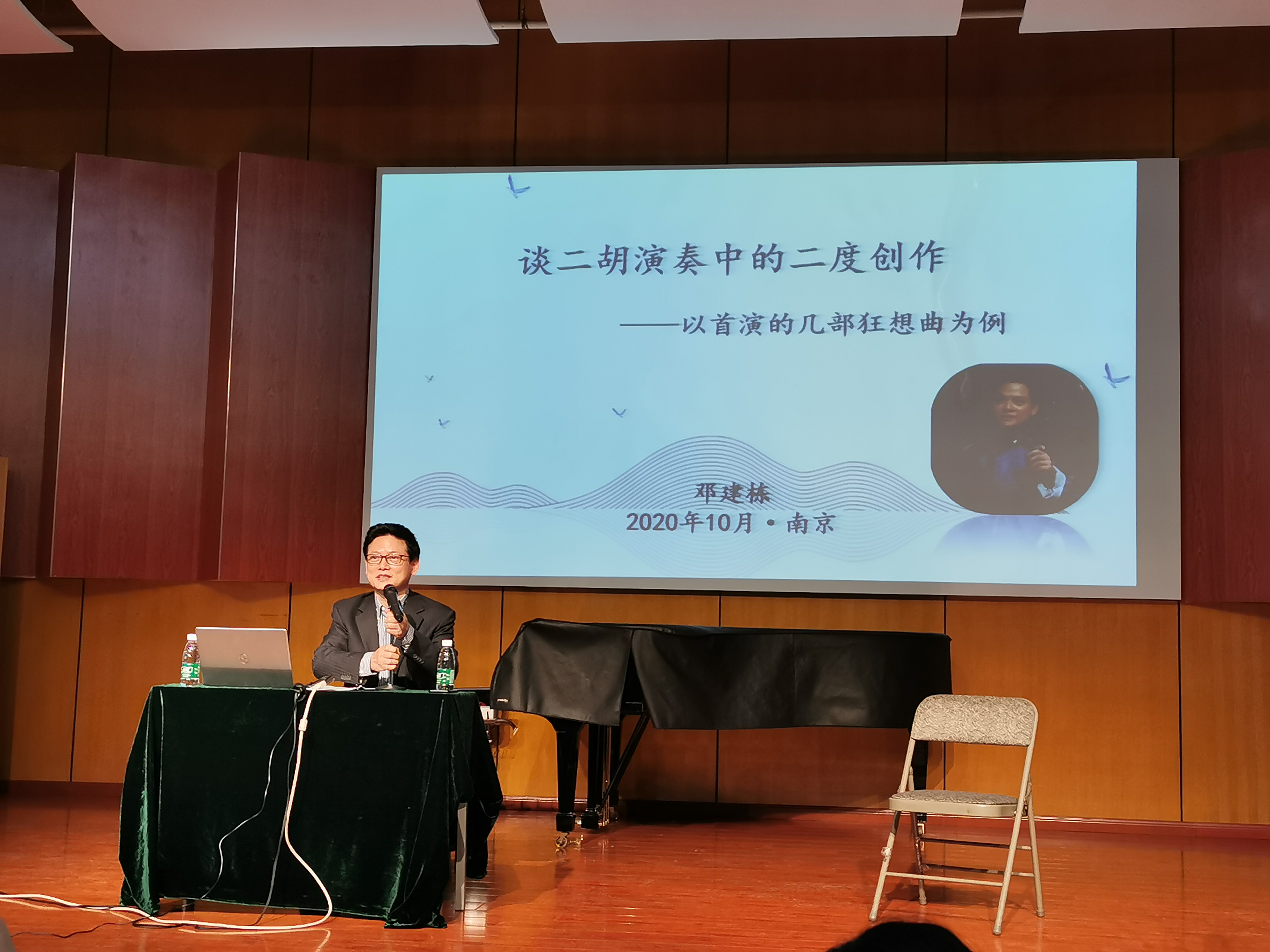 10月13日,在陈晨老师的带领下,艺术表演系器乐专业学生田佳美、肖雨彤、盛佳仪、袁梦同学到南京艺术学院音乐学院观摩学习了著名二胡演奏家、教育家邓建栋的《谈二胡演奏中的二度创作》专题讲座,讲座由音乐学院范晓峰院长主持。 讲座主要内容包括:为什么要谈二度创作?如何进行二度创作展开?邓老师结合以首演的几部狂想曲为例,讲解精细,学生获益匪浅。在交流互动环节,田佳美同学还向邓建栋老师请教二胡演奏的相关问题。 通过学习,师生对器乐演奏的学习有了更开阔的视野和灵感,被邓老师醉心于二胡演奏,投身于二胡教育事业的高尚品格深深感动。带队老师也表示在今后的教学中,要注重培养学生对艺术的独到理解和音乐表演的情感,提升教育教学水平。(器乐教研室 陈晨)