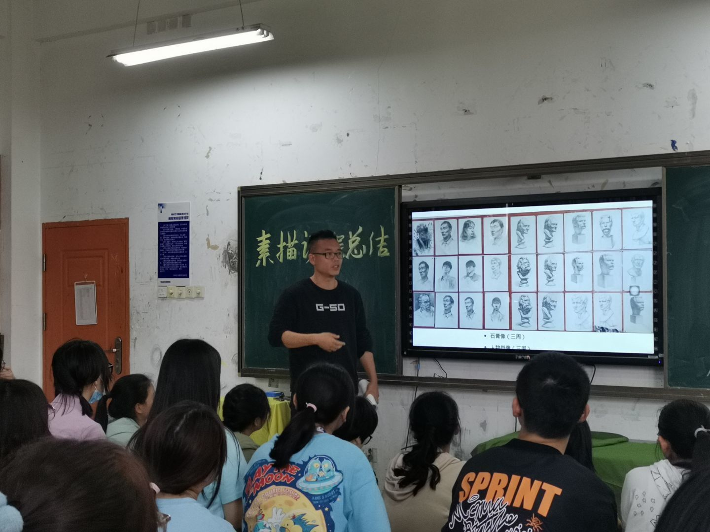 4月29日下午,艺术设计系美术基础教研室在图文楼三楼313画室举办了基础课程阶段学习展示活动。艺术设计系主任徐军、主任助理张颖华、美术基础教研室主任徐阳以及部分艺术设计系师生共同参加活动。 刘建彬老师首先对20级影视动画专业素描课程进行了任教阶段陈述。他说通过美术基础教学改革,扭转了自己的常规教学思路,从石膏像到人物肖像,再到人物创意表现,让他看到了学生内心无限的潜能,老师只要不断地肯定与鼓励,发现每个学生的最优点并加以引导,学生的专业学习兴趣一定会提升。 接着,20级影视动画班的学生也纷纷上台,向在座的师生展示了自己的学习成果。 艺术设计系主任助理张颖华最后总结指出,从今天的成果展示中,我们感受到了学生的学习状态都非常好,进步都很大,这要归功于当下我们一直积极探索并践行的艺术教学改革。(艺术设计系 刘建彬) |