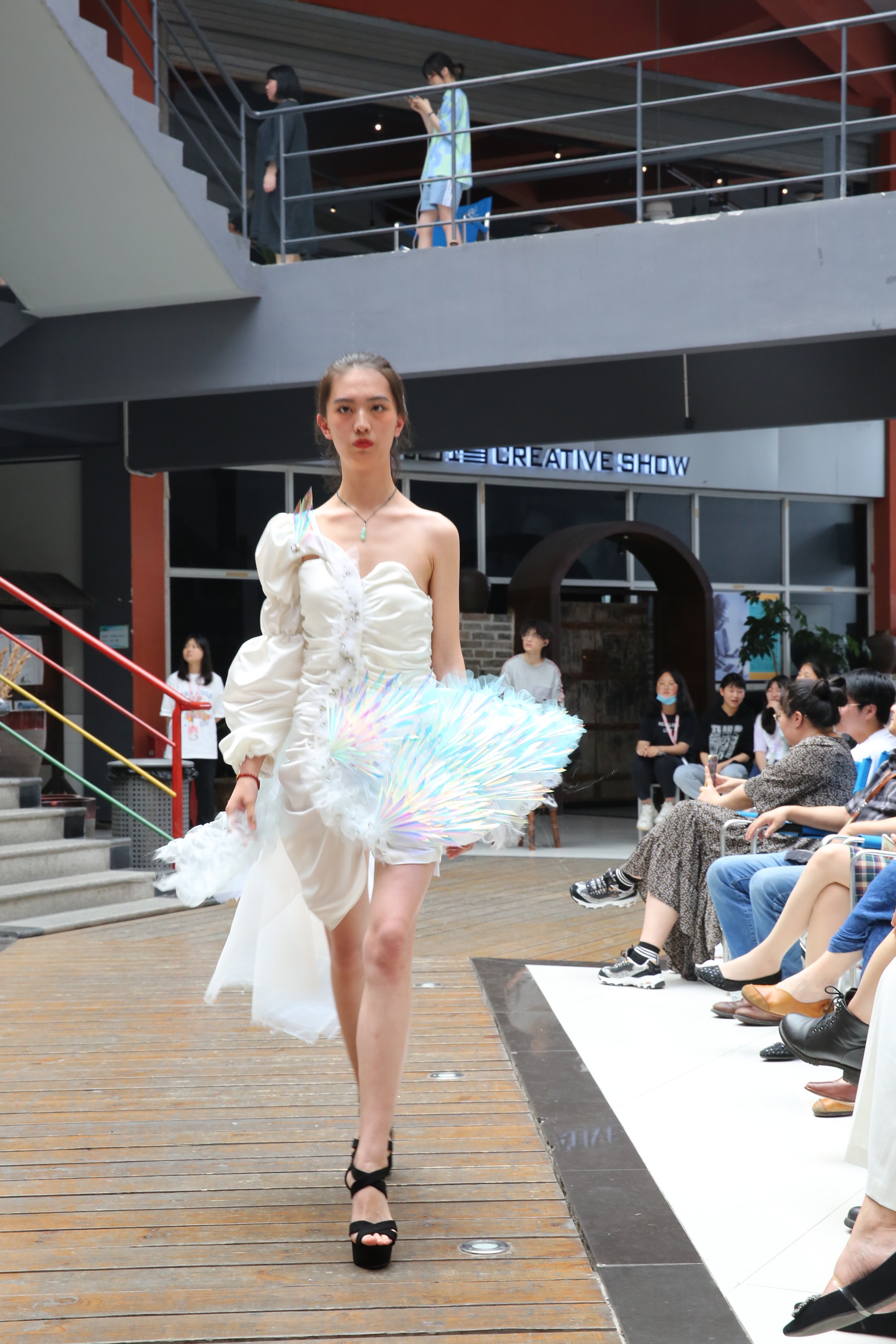 5月27日,常高艺艺术设计系服装教研室2017级服装与服饰设计专业综合设计课程作品动态展在图文楼隆重举行,艺术设计系部领导、服装教研室全体教师以及学生参加了活动。 本次动态展共展出33名同学的24个系列114套服装设计作品,包括《天鹅湖》、《面具人生》、《equilibre》、《鹤 希望》等。自然的舞台,浪漫的音乐,模特社成员优雅的身姿配上一套套华丽的服装,给观众奉上一场精彩的视觉盛宴。现场不断爆发出热烈的掌声、欢呼声。 服装教研室主任周俊霞介绍了17级服装专业部分优秀的设计作品以及设计理念。指导老师罗园元在学生现场走秀的过程中进行解说。一张张设计图、一件件漂亮的服装,赋予学子们在NCA校园的青春印记,是她们丰硕的学习成果。这其中,包括多位同学将对方的思想和自己的想法相互结合,从而创造出更加特别、更加具有思想性的作品。艺术设计系党支部书记季红霞为学生送上最美好的祝愿,对悉心培养学生的教师表示衷心的感谢。 最后,学生代表赵爱可与徐心怡发言。数月的锤炼,同学们告别了青涩,走向了成熟;同学们忘掉了鲁莽,学会了思索。感谢学校的老师对她们的辛勤培育,同时对未来充满向往。(服装教研室 罗园元)