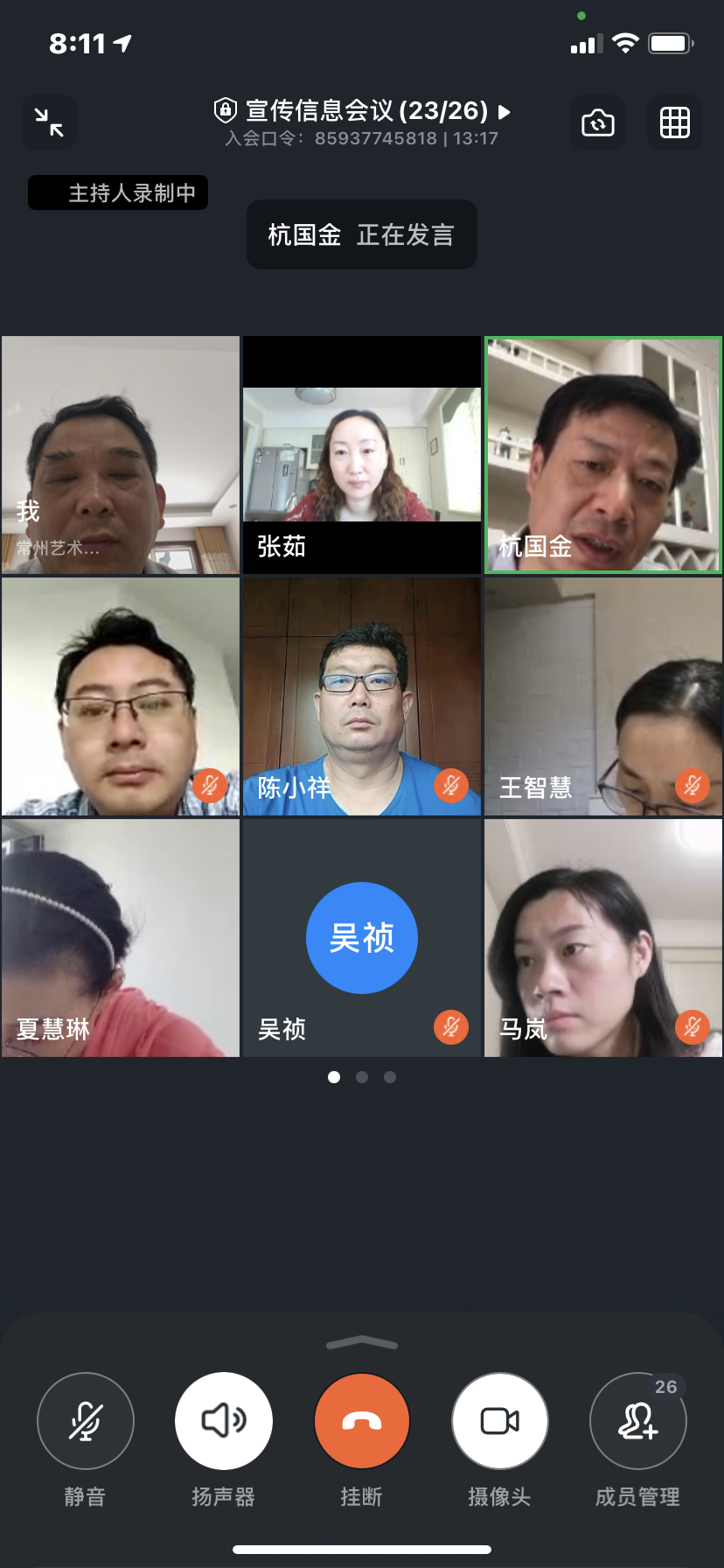 8月9日上午,常高艺办公室通过钉钉平台组织召开了学校暑期信息宣传工作会议。杭国金副校长,各系部处室宣传负责人、党支部书记、通讯员参加会议。 首先,杭国金副校长介绍了会议的目的。他说此次会议主要是为了传达8月5日常州市文广旅局的信息宣传工作会议精神,总结学校上半年宣传工作,为今后信息宣传工作开拓新局面。随后,他就学校今年1-7月份的信息宣传工作从积分排名、稿件录用情况、新媒体的运用、存在问题、改进措施等方面进行了进行了分析总结;并从加强计划性、提升组织力、突出时效性、内外结合、凸显特色、扩大影响力等方面对学校下一步的信息宣传工作提出了改进和强化要求。希望大家紧跟时代,创新宣传思路,群策群力,共同为学校信息宣传工作做贡献。 办公室张老师从系部处室宣传任务完成情况、稿件的内容、形式和质量、报送情况、存在问题等方面对上半年信息宣传进行了具体的分析总结;并从强化质量意识、完善宣传绩效考核办法、优化宣传队伍、拓宽宣传信息平台等方面提出了自己意见和建议。 最后,办公室张茹副主任传达了文广旅局信息宣传工作会议精神,对文广旅局信息宣传考核奖励办法的新要求新变化、信息报送要求、考核机制等进行了介绍;一起分享了文广旅局信息宣传工作会议《信息考核解读》、《宣传工作辅导》的PPT,并征询了大家对学校信息宣传工作的意见和建议。 通过会议,与会人员既看到学校信息宣传工作的成绩,坚定了信心;也找出了差距,发现了不足,进一步明确了责任和努力方向。(张经亮)