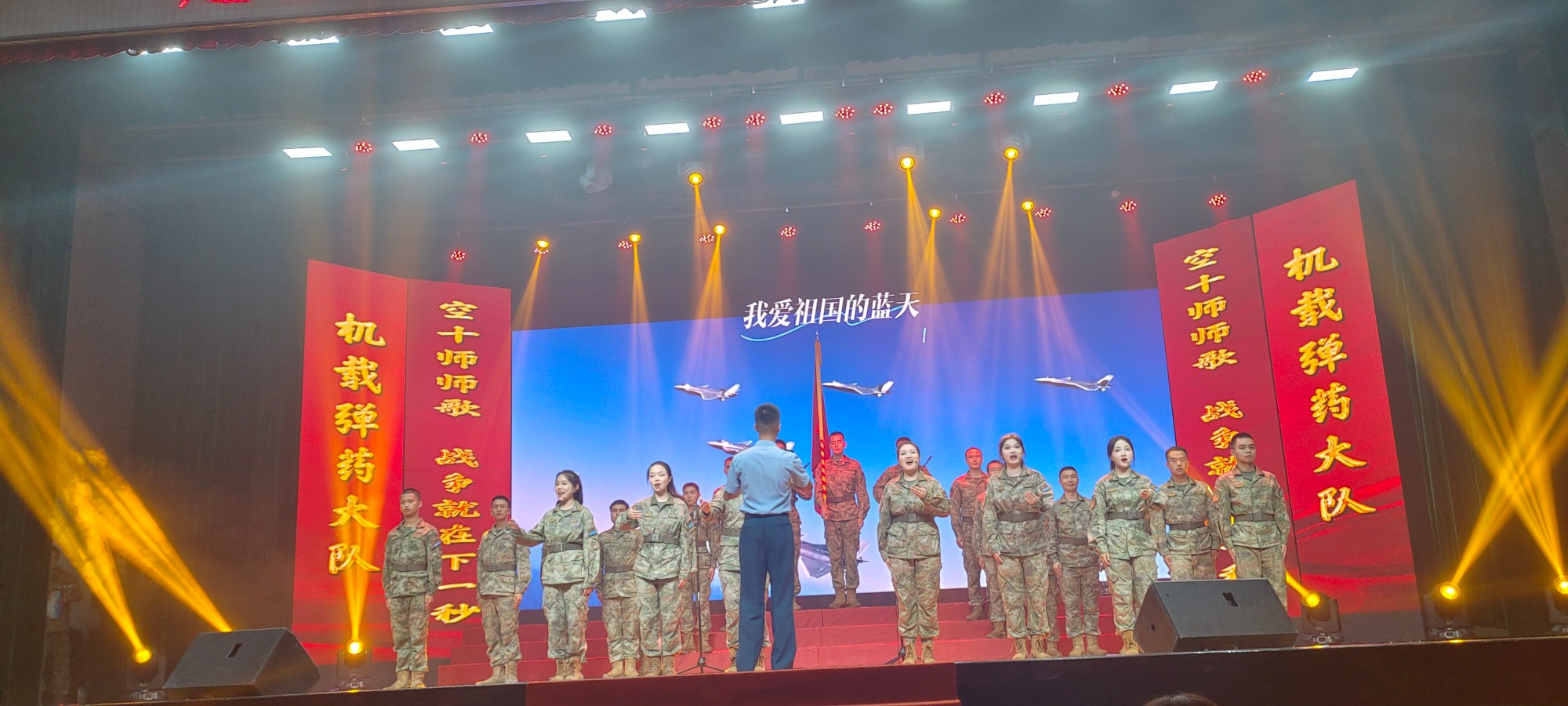 9月27日,在奔牛机场空军某部迎国庆歌咏比赛大会上,我校师生与部队军官同台一展歌喉,嘹亮的声音响彻讲堂里。"听党指挥,能打胜仗,作风优良"十二个字气势昂扬,撼动着在场每一个观众与评委,最终荣获歌曲最佳表现奖。另外,声乐专业的周怡岑等六位同学带来了一首六人小合唱《军人本色》,尽显军人风采!(社会实践部)