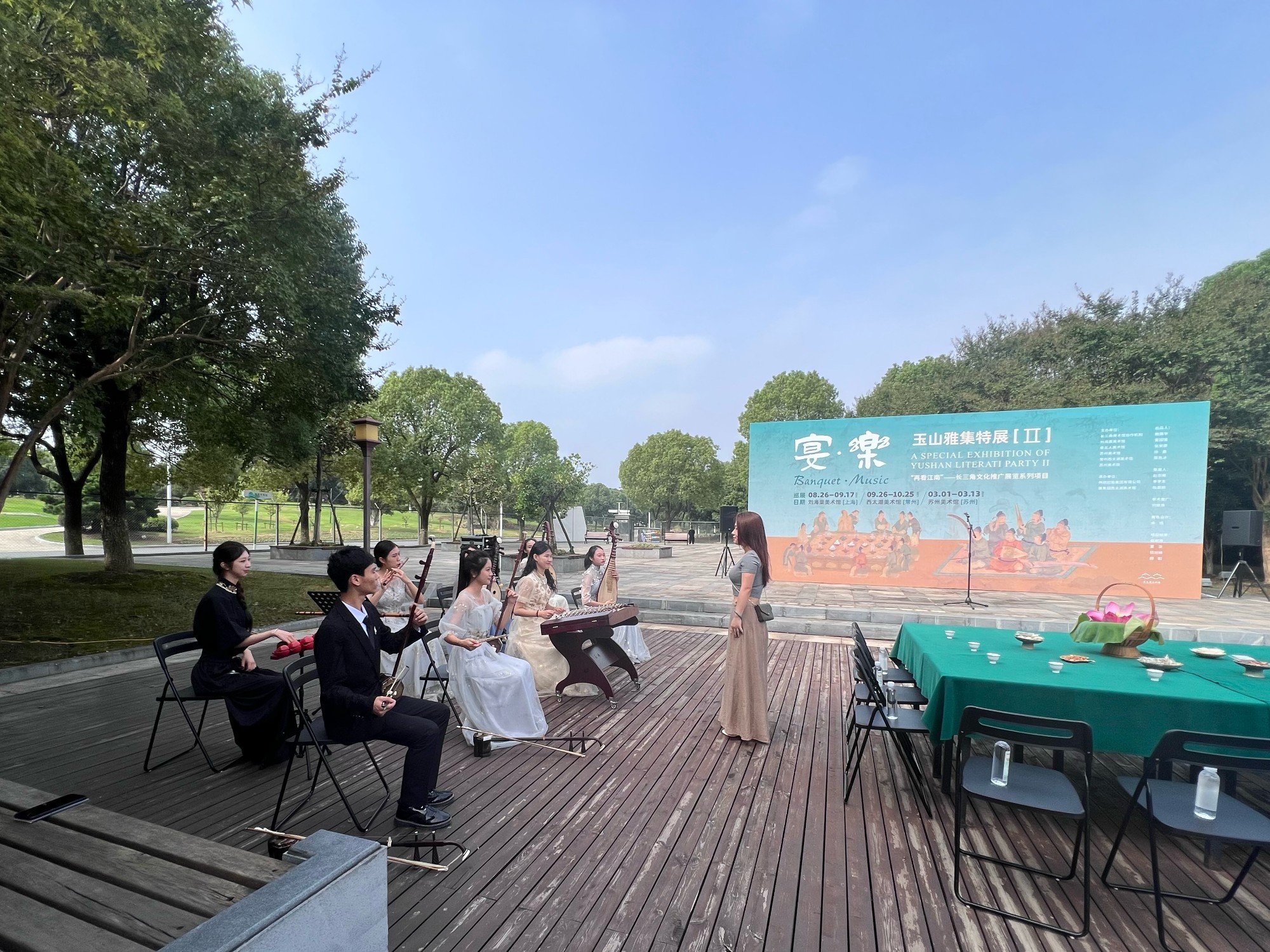9月26日,为喜迎国庆、中秋佳节的来临,长三角美术馆协作机制、上海刘海粟美术馆、侯北人美术馆、苏州美术馆、苏州美术院、西太湖美术馆在西太湖美术馆共同主办"宴·乐——玉山雅集特展。常高艺施天颖老师带领表演系8名器乐同学在特展中演奏民族室内乐《清平乐》,悠扬的乐曲与优秀展览融为一体,回荡在特展现场,让大家仿佛穿越历史浩瀚时空,感受独属于江南的人文之美。(社会实践部)