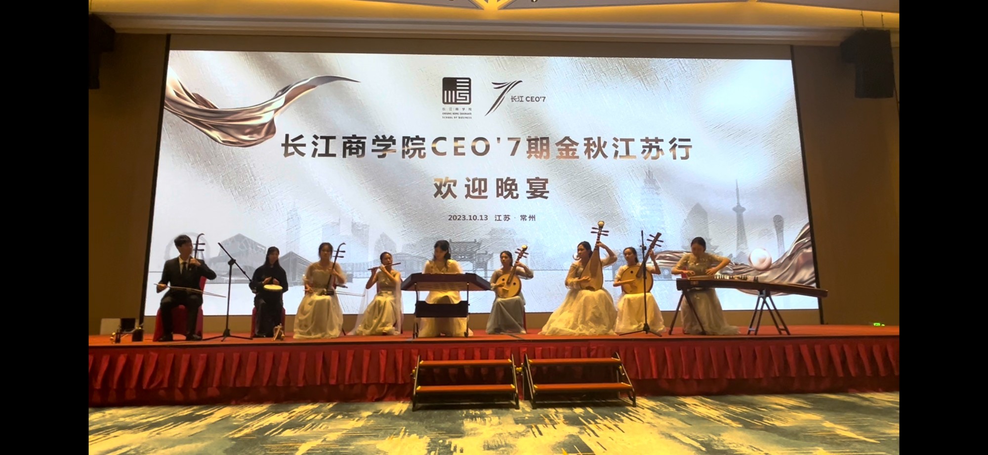 10月13日晚,长江学院CEO 7期 江苏论坛会在常州富都酒店举行,常高艺表演系器乐专业的9位同学在叶乐老师的带领下应邀参演。本次他们演奏曲目是《清平乐》《山村迎亲人》《新赛马》《敦煌新语 》。精彩的演奏受到一致好评。这个团队曾经多次参演国家级、省级艺术展演,并取得多项金奖。 (社会实践部)