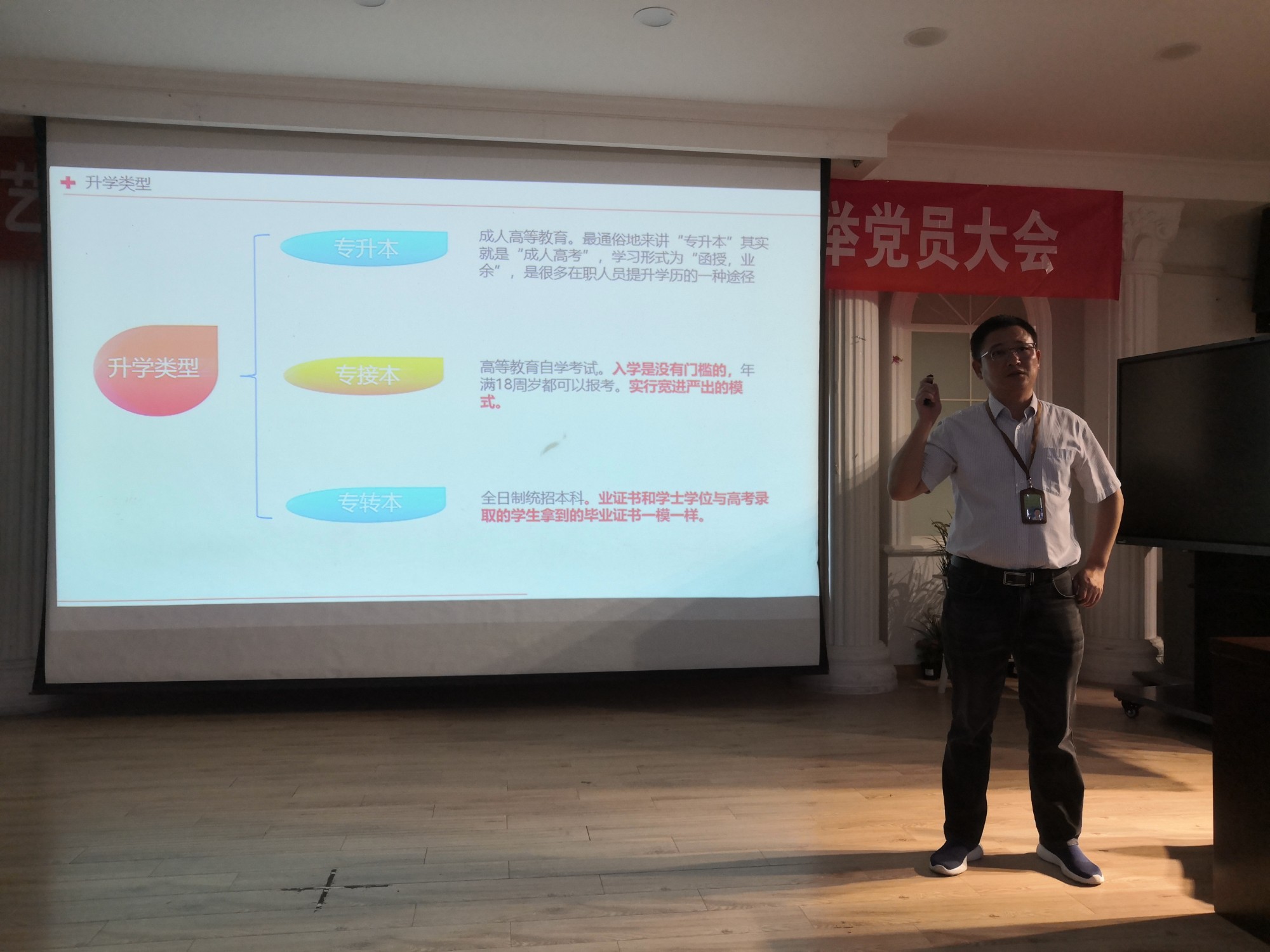 为了帮助2020级高职学生了解"专转本"考试,指导同学们做好报考准备和复习计划,10月16日下午,招生与就业服务中心特别邀请学工处王志勇副处长为大家做专题讲座,2020级高职约160名学生参加讲座。 王志勇老师向同学们介绍了"专转本""专接本""专升本"的区别,以及2023年"专转本"的录取政策,希望大家根据自身的学习成绩和目标要求进行报考;结合近几年报考中出现的常见问题,王老师提醒大家要特别注意各个高校招生简章中的报考要求;在复习备考中要重视英语的学习,不要偏科,同时要注重专业课学习。 招就中心罗业尧主任向同学们通报了近三年来我校"专转本"考试的成绩,特别是2023年我校有3名学生在转本毕业后已经考上了硕士研究生,鼓励大家要有信心。 转本成功的2017级艺术设计专业高佳鑫同学和2018级播音与主持专业谭佳怡、刘璨嫄同学,结合自己的考试经验,以视频和文字的方式为大家提供了复习策略。(招就中心 罗业尧)