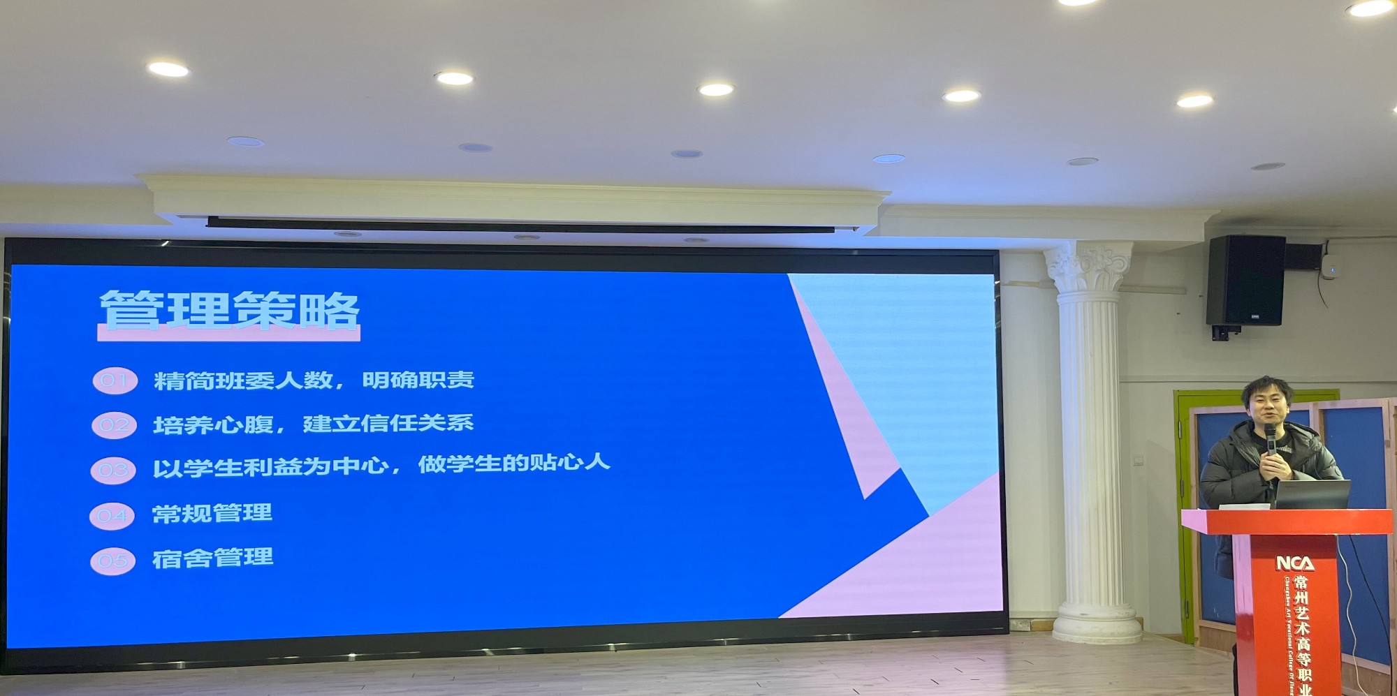 此外,我校2024年常州市职业学校班主任能力比赛二等奖获得者何磊老师作为本学期班主任“育梦领航”交流坊第一期分享人,做了题为《教育“熊孩子”,得用“野路子”》的交流分享。何老师围绕自己工作以来的带班经历,从调整心态、树立威信、管理策略等方面分享经验,他提出“熊孩子”的日常管理中要发挥学生自主管理的能力,相信学生,让学生在不断的尝试中提高自身的能力;同时,班主任们也可以在带班过程中不断探索育人方式,做好“熊孩子”的引领者、指导者。