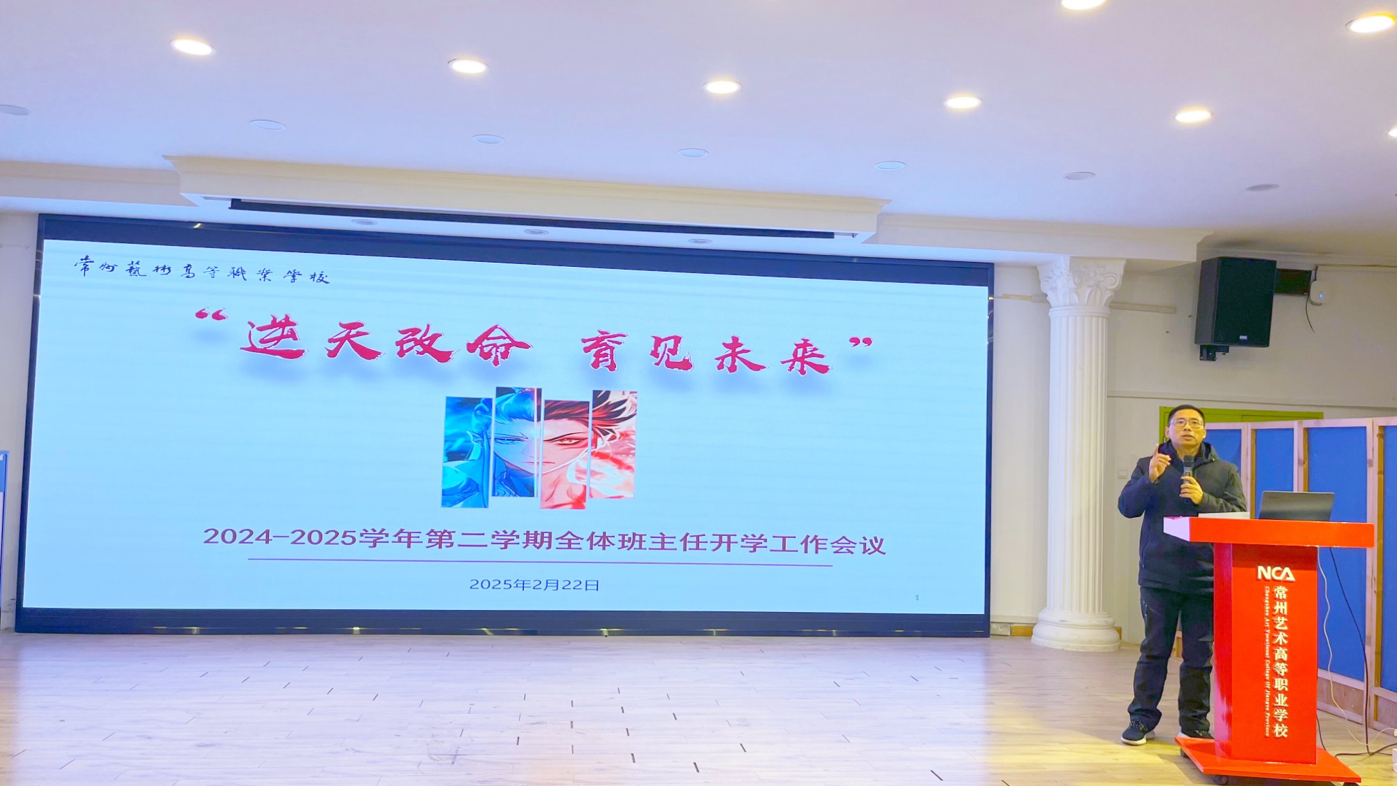 为确保开学工作有条不紊进行,起好步、开好局、谋新篇,2月22日下午13:30,我校在综艺楼阶梯教室召开了“逆天改命 育见未来”2025年春学期全体班主任开学工作会议。本次会议由学工处副处长王志勇主持,副校长陈俊贤、学工处处长夏成晨、副处长季红霞、两系德育领导、全体班主任和辅导员参加会议。