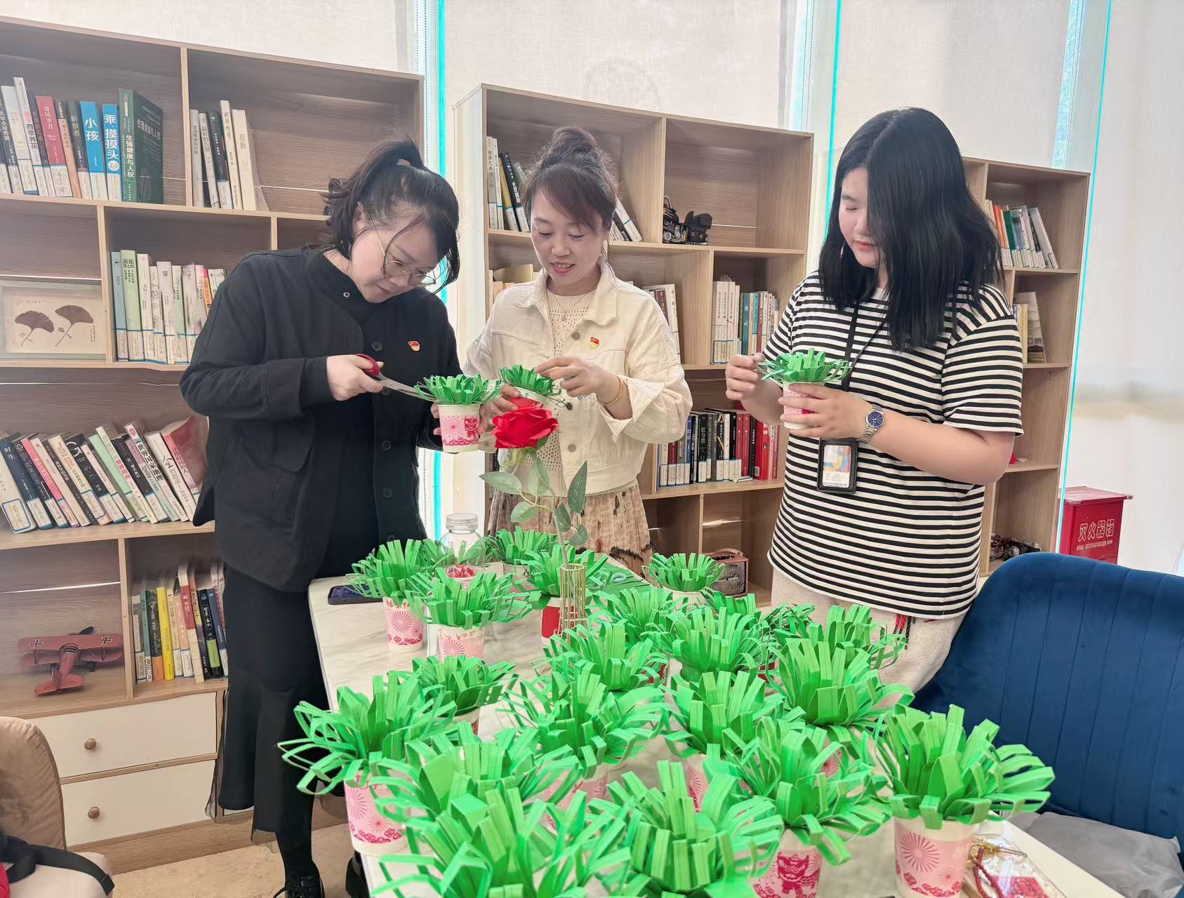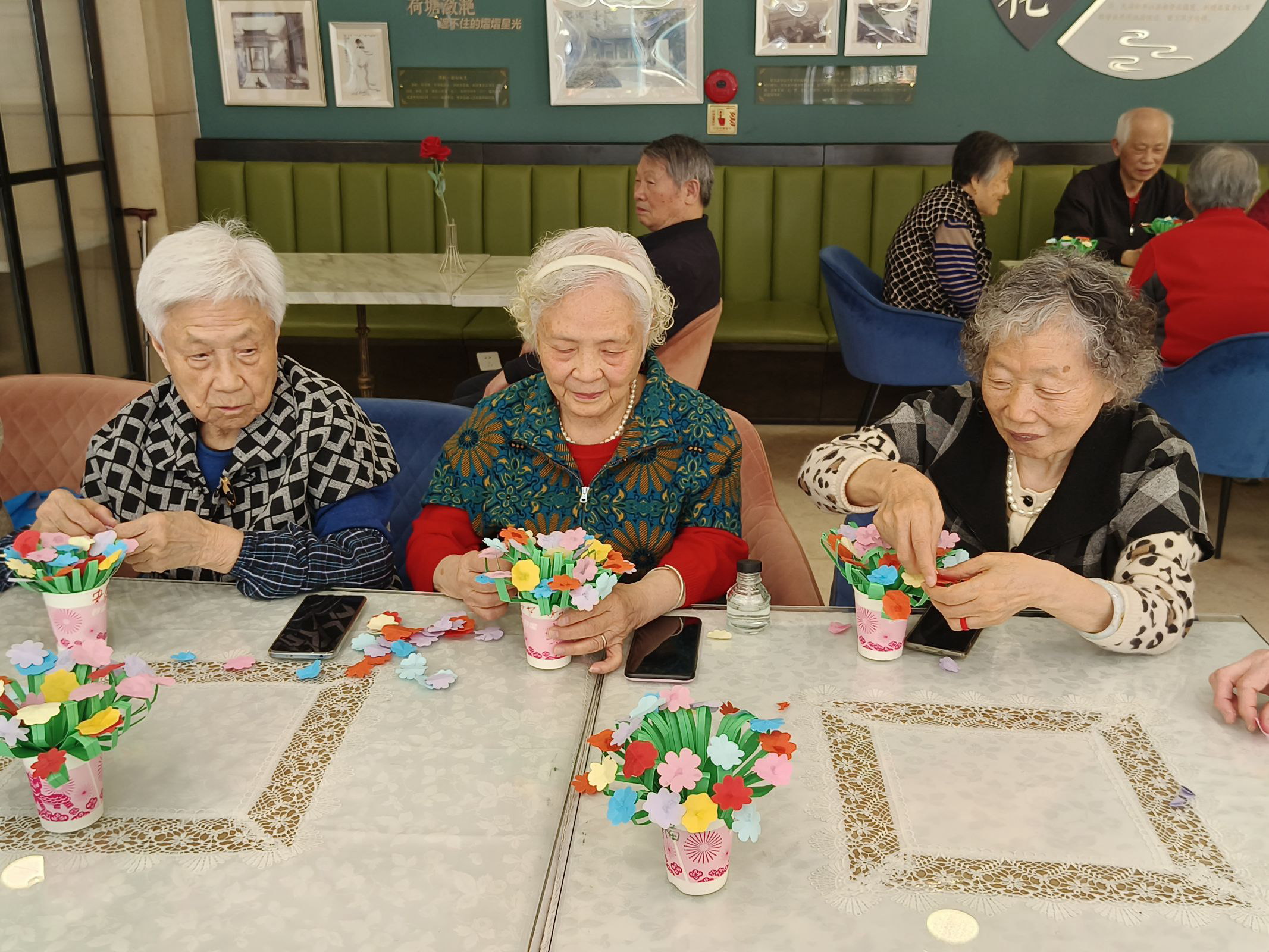 4月15日,我校艺术设计系教师高岑与党员老师韦霞、刘洪艳带领22环艺班桑承璐、朱语轩,22非遗班彭晓丽、吴海易来到常州市钟楼区幸福天年老年公寓,开展了一场别开生面的主题为“纸尖生花”的公益授课活动。