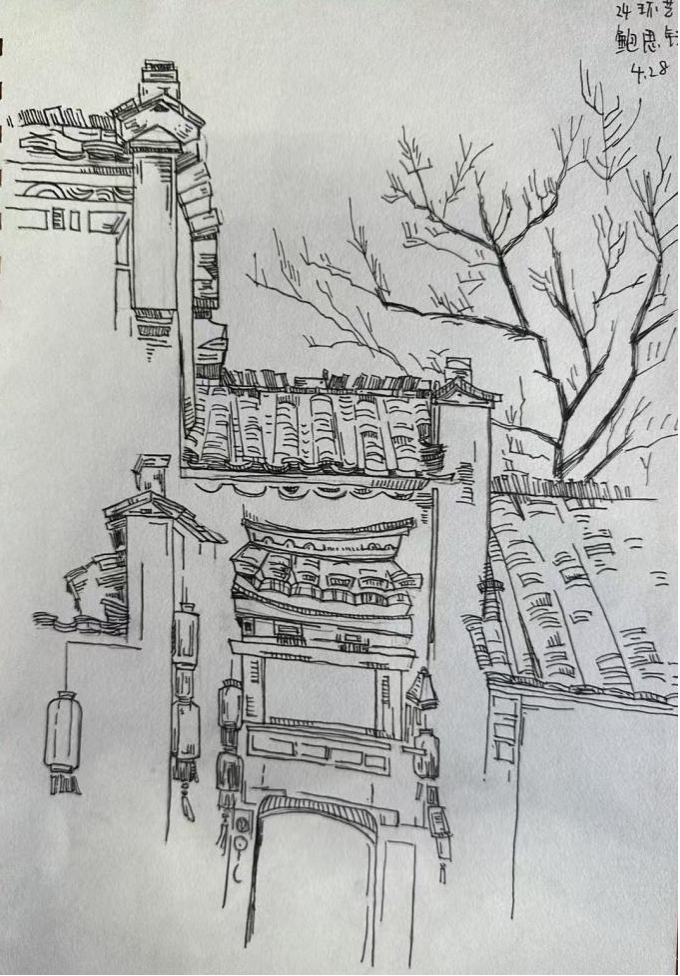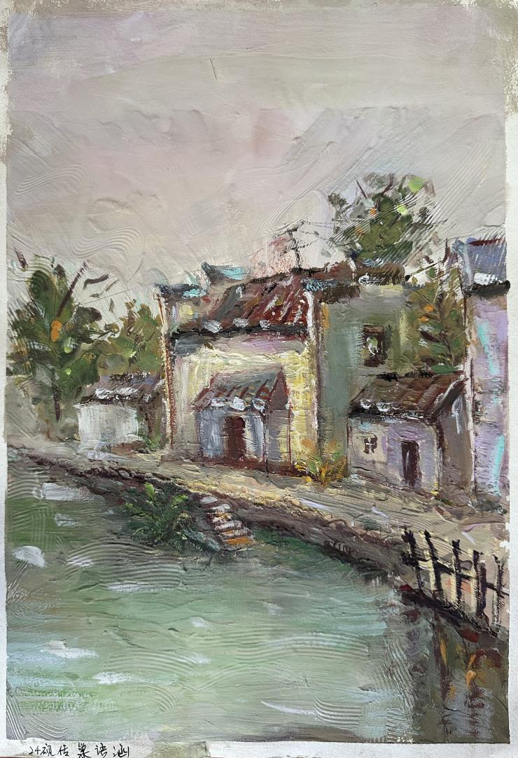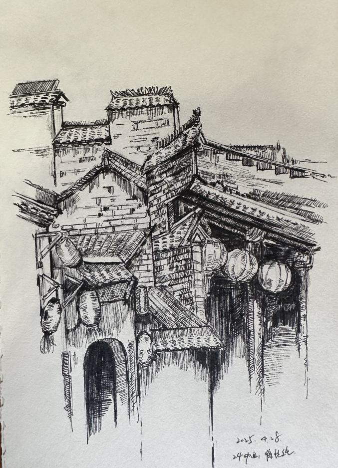 蜕变见证:笔触技法尽显成长厚度 随着研学临近尾声,在全体研学老师的耐心指导下,同学们的户外写生作品迎来蜕变式突破,笔触从初时的稚嫩生涩变得沉稳老练,构图从随意铺陈转为精巧讲究。无论是皖南古建的飞檐斗拱,还是田间村落的烟岚暮色,都在画布上以更成熟的技法得以呈现。