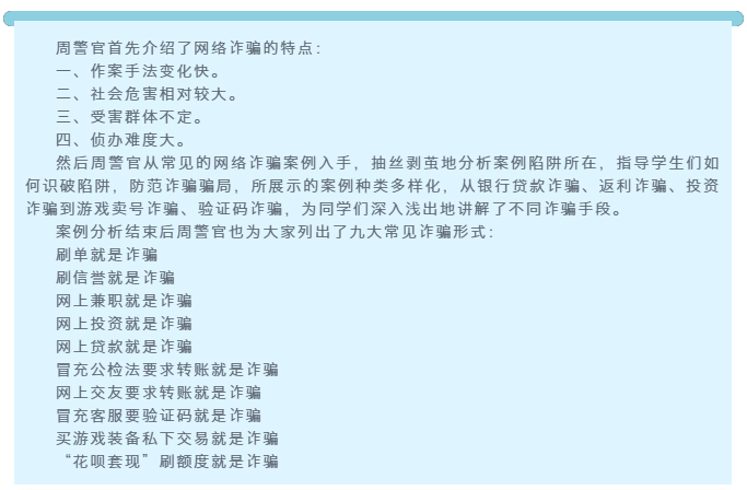 警官进校园 知识记心间--开云手机登录入口安全讲座篇之防范通讯网络诈骗